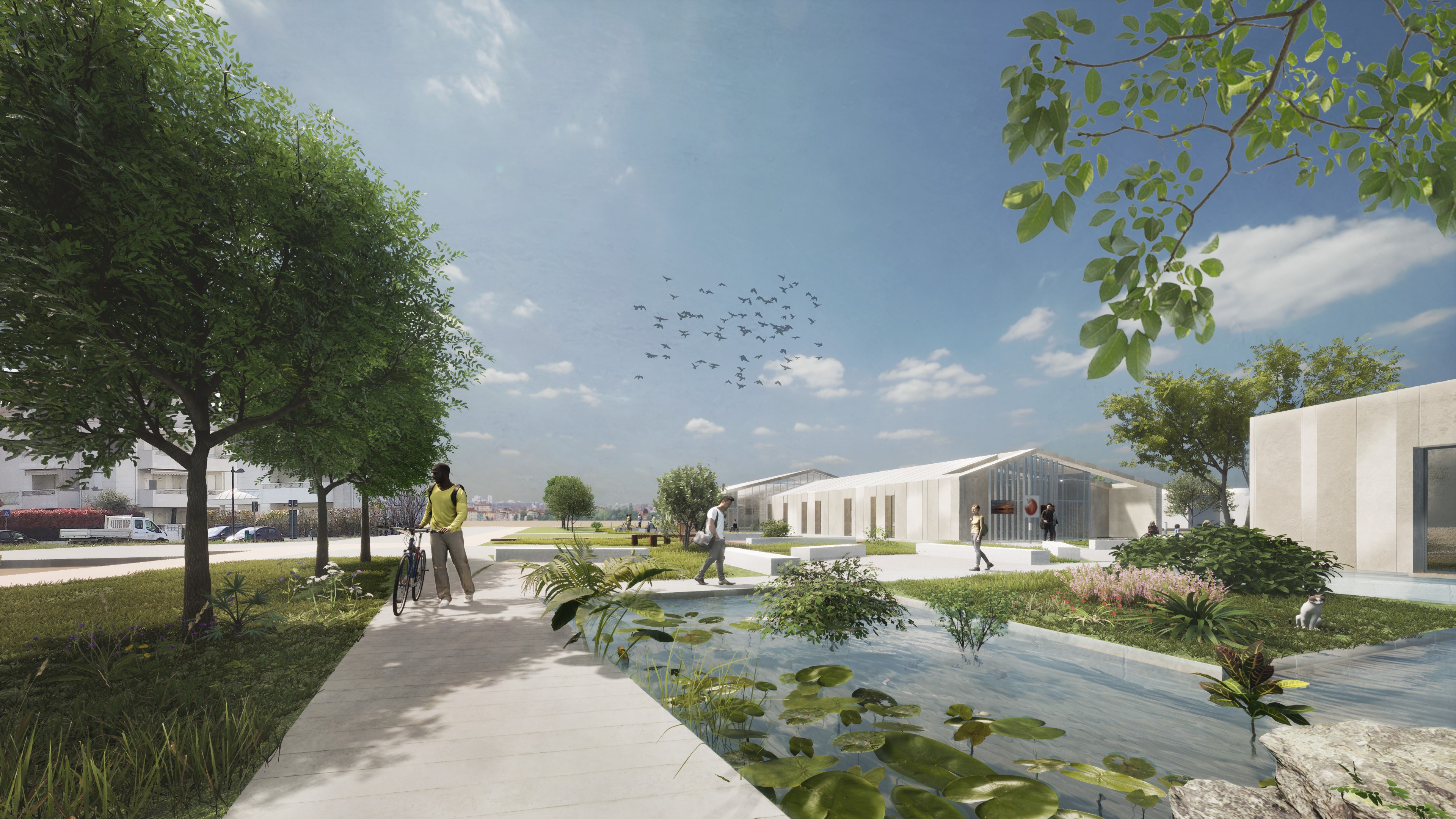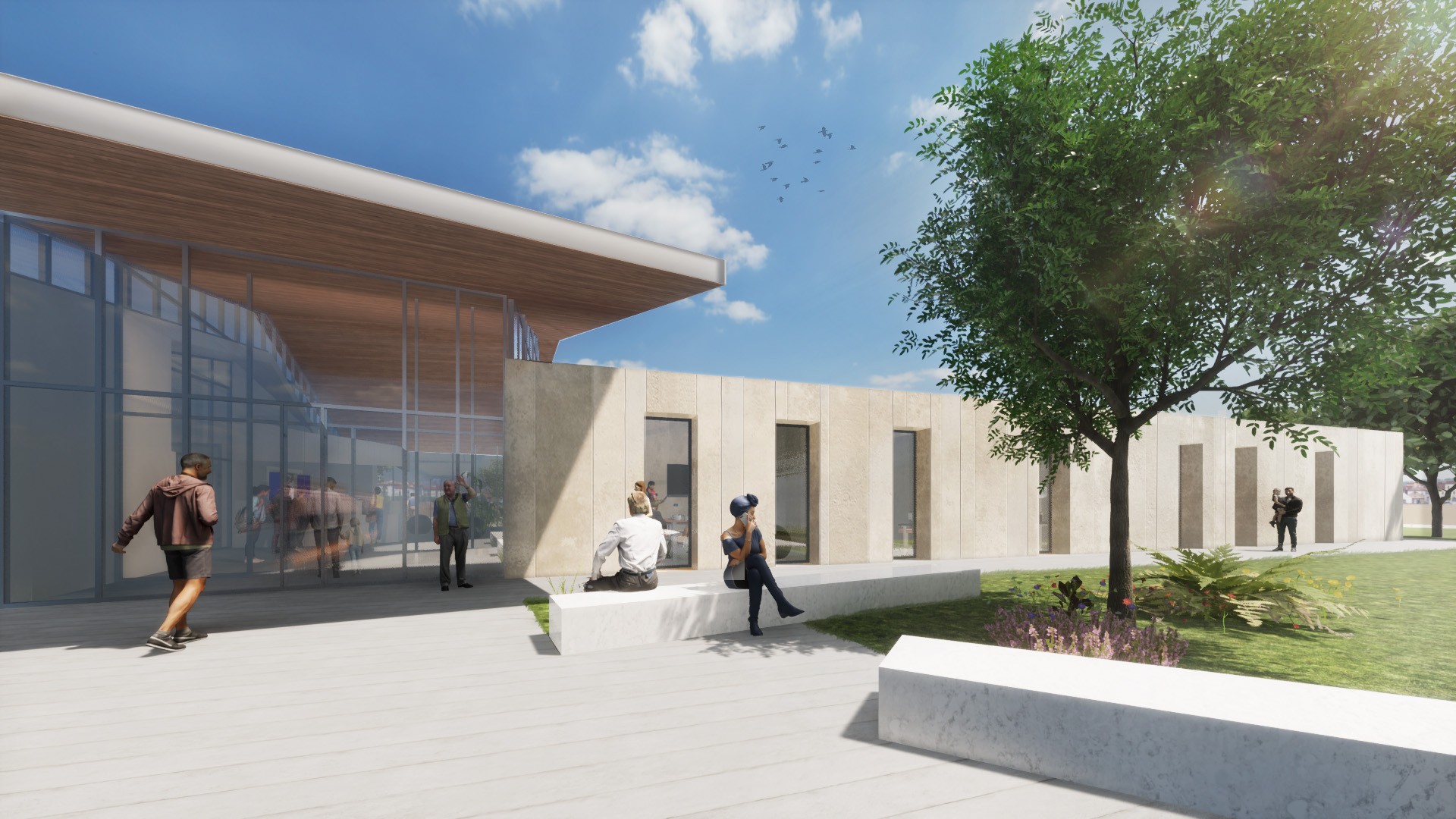Il progetto presenta un masterplan unico pur essendo suddiviso in due lotti: uno di proprietà del Comune, adibito ad area congressi/polifunzionale, e uno di proprietà dell'Azienda Sanitaria, adibito a Casa della Comunità. Lo spazio posto fra i due edifici sarà un’area multifunzionale, una piazza pubblica per ospitare piccoli spettacoli all’aperto, riunioni, mostre. La ‘‘quinta’’ è rappresentata da una parete schermante, composta da listelli, in corrispondenza della bussola di ingresso alla Casa di Comunità, posta a Nord.