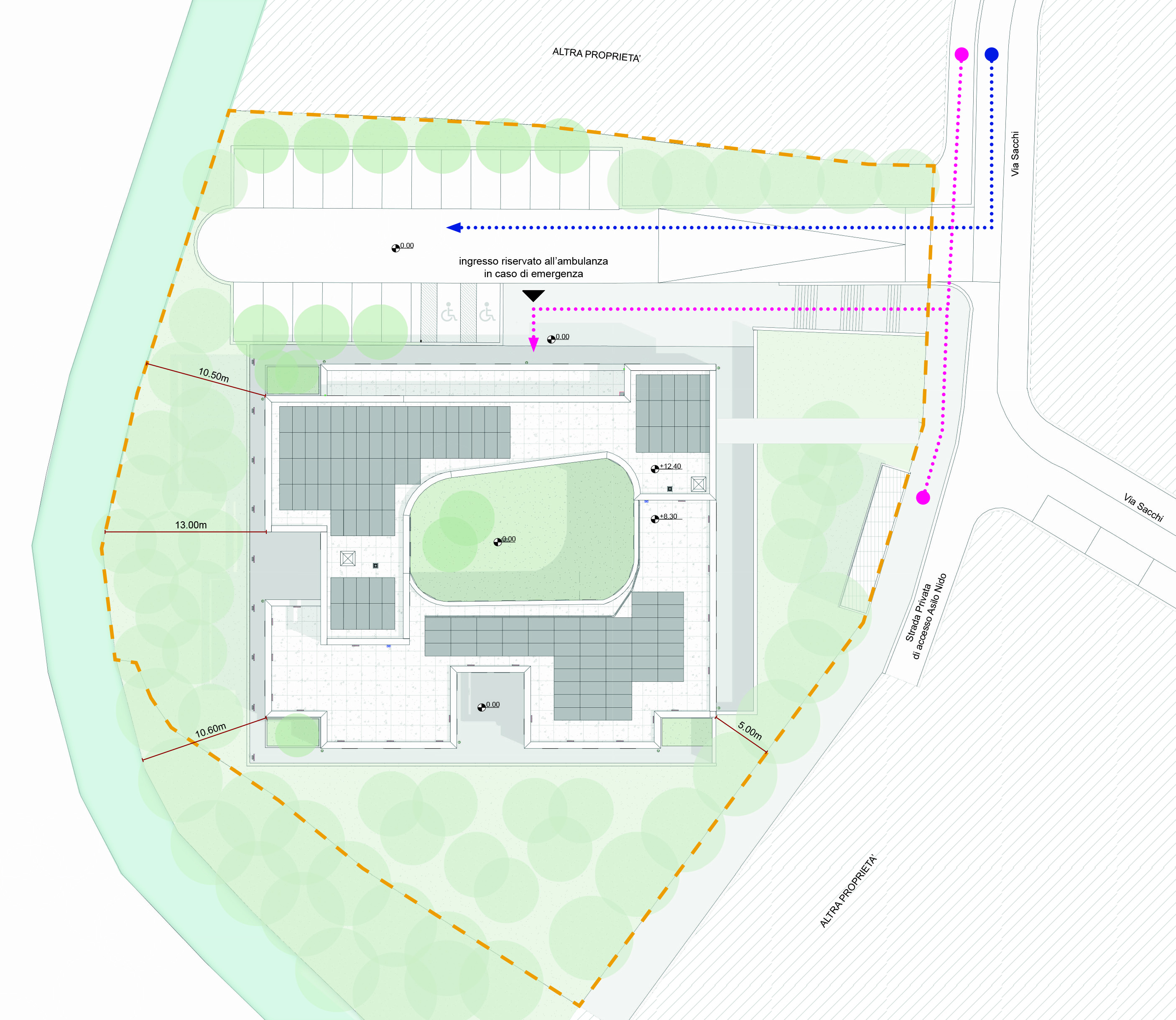 L’obiettivo del progetto è duplice: offrire nuovi servizi alla comunità e valorizzare l’ambiente urbano circostante attraverso percorsi pedonali accessibili, aree verdi e una chiara leggibilità degli spazi. L’architettura risponde ai criteri di funzionalità, modularità e comfort, con ambienti flessibili e facilmente riconfigurabili in base alle esigenze sanitarie. La cura nei materiali, nei colori e nella distribuzione degli spazi contribuisce a creare un’atmosfera rassicurante e umanizzata, a misura di paziente.