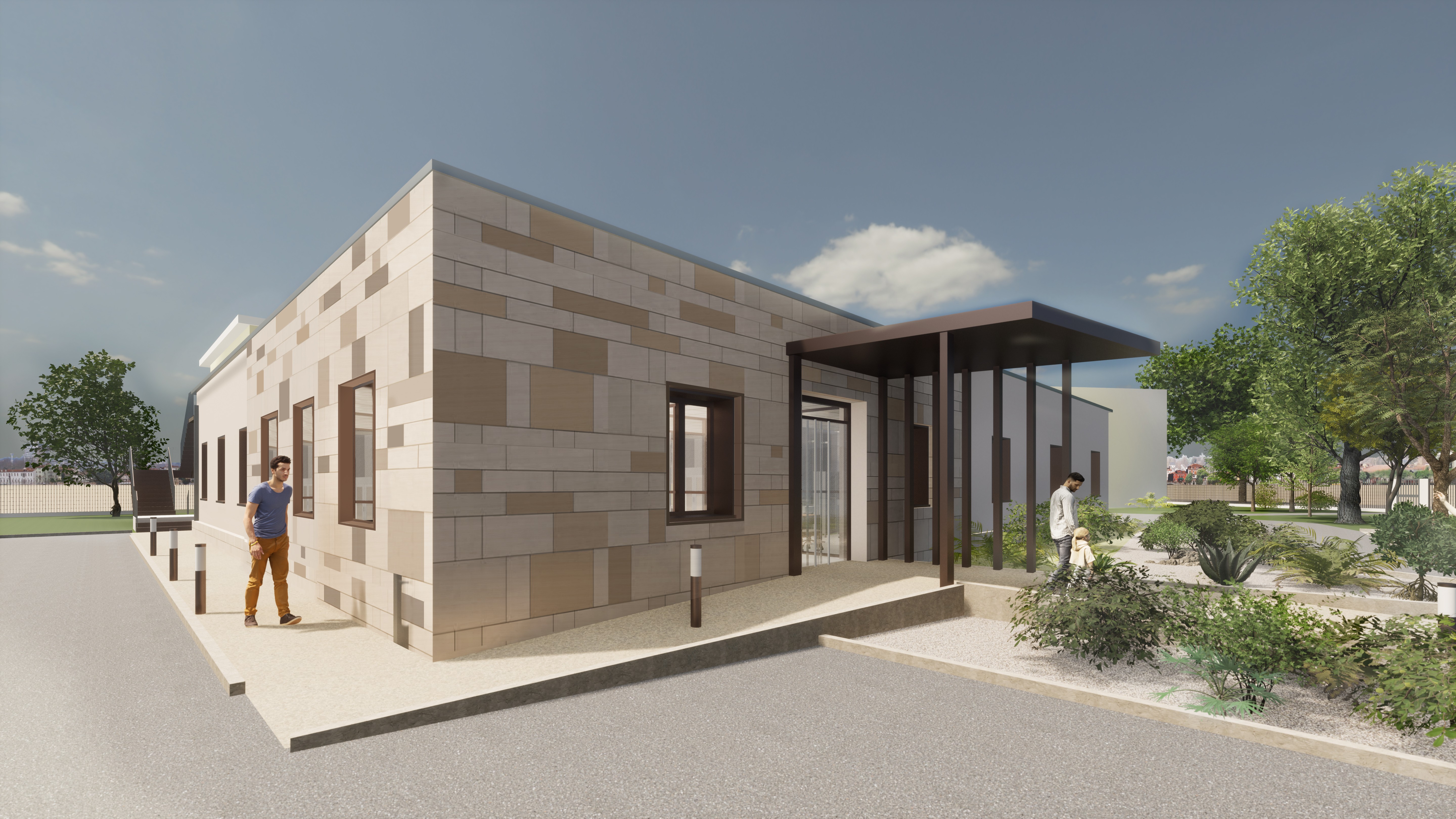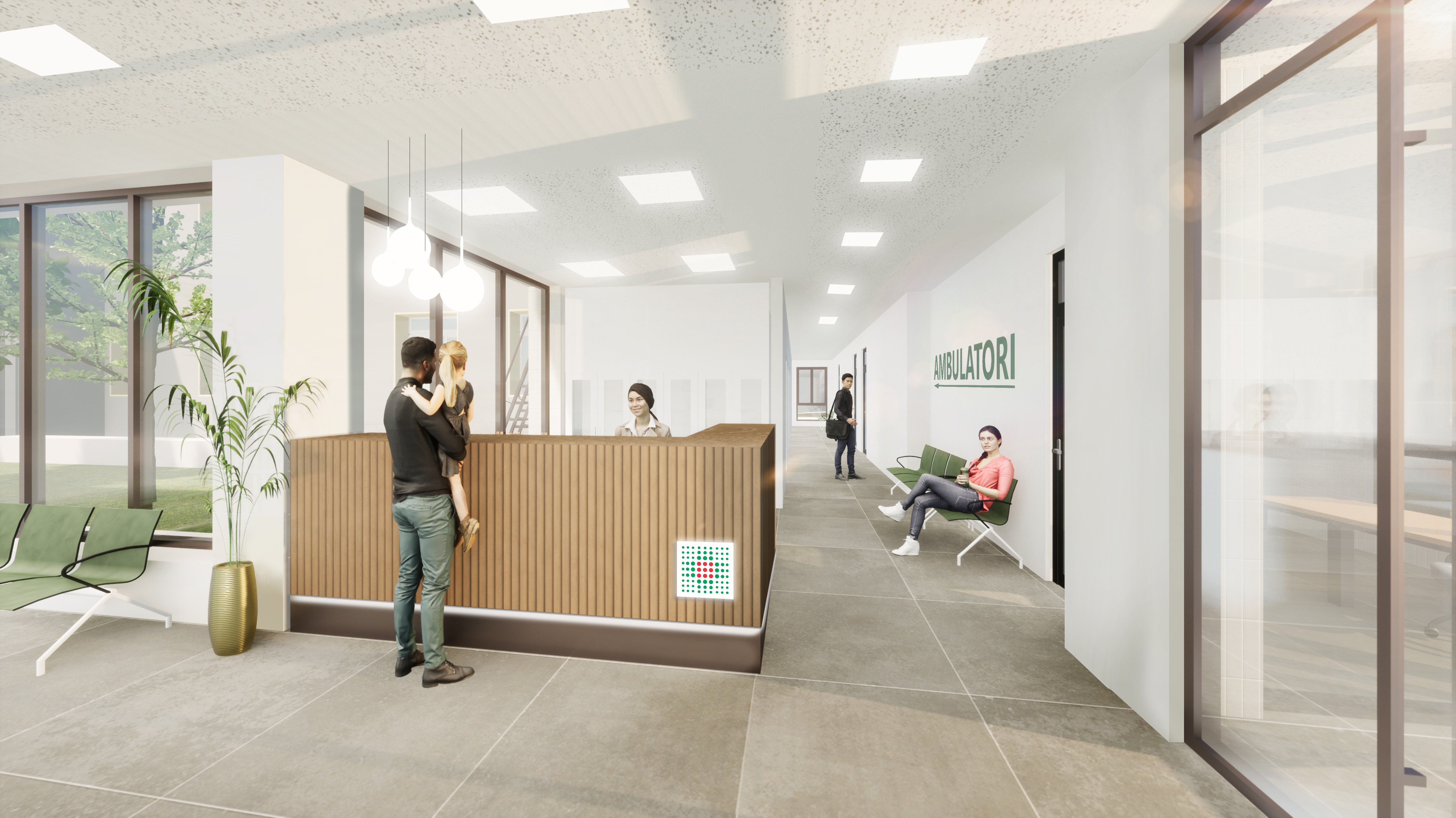 L'obiettivo è creare un edificio accattivante che arricchisca la città con nuovi servizi, senza compromettere la funzionalità della preesistenza ma valorizzandola attraverso percorsi più sicuri e facilmente individuabili. Una volta entrati nell’edificio, si viene immediatamente accolti in una hall con bancone e alcune sedute per l’attesa.