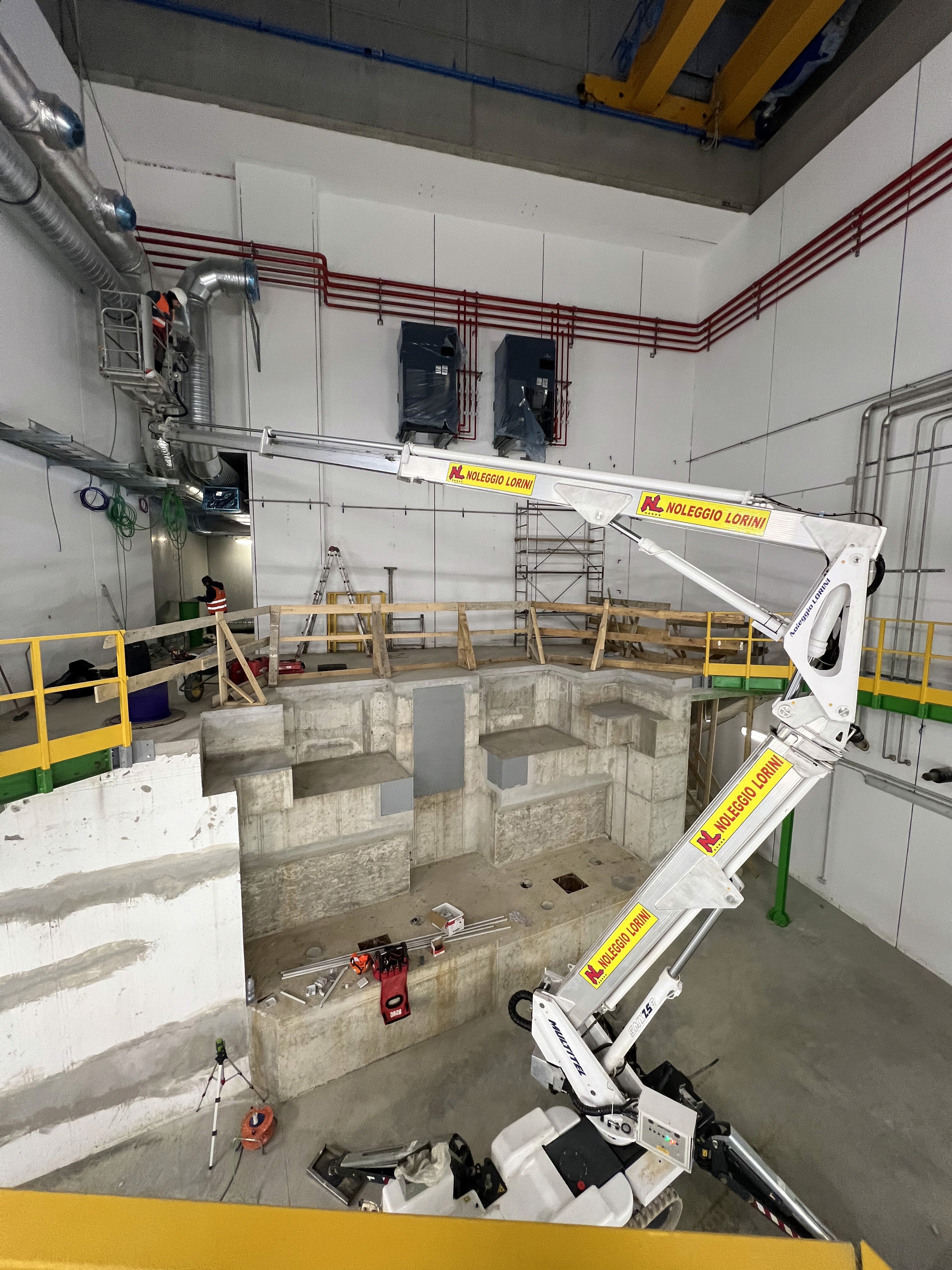 Main s.r.l. si è occupata, durante il cantiere, del coordinamento delle opere strutturali ed edili con le numerose e complesse opere impiantistiche previste nel progetto a base gara. Tutte le opere, ma in particolar modo quelle impiantistiche, sono state oggetto di significative integrazioni e ampliamenti, resi necessari soprattutto dal continuo confronto con i due fornitori dei macchinari ad alta tecnologia (HITACHI e TAE), le cui specifiche esigenze tecniche hanno richiesto un costante adeguamento delle soluzioni progettuali e realizzative.