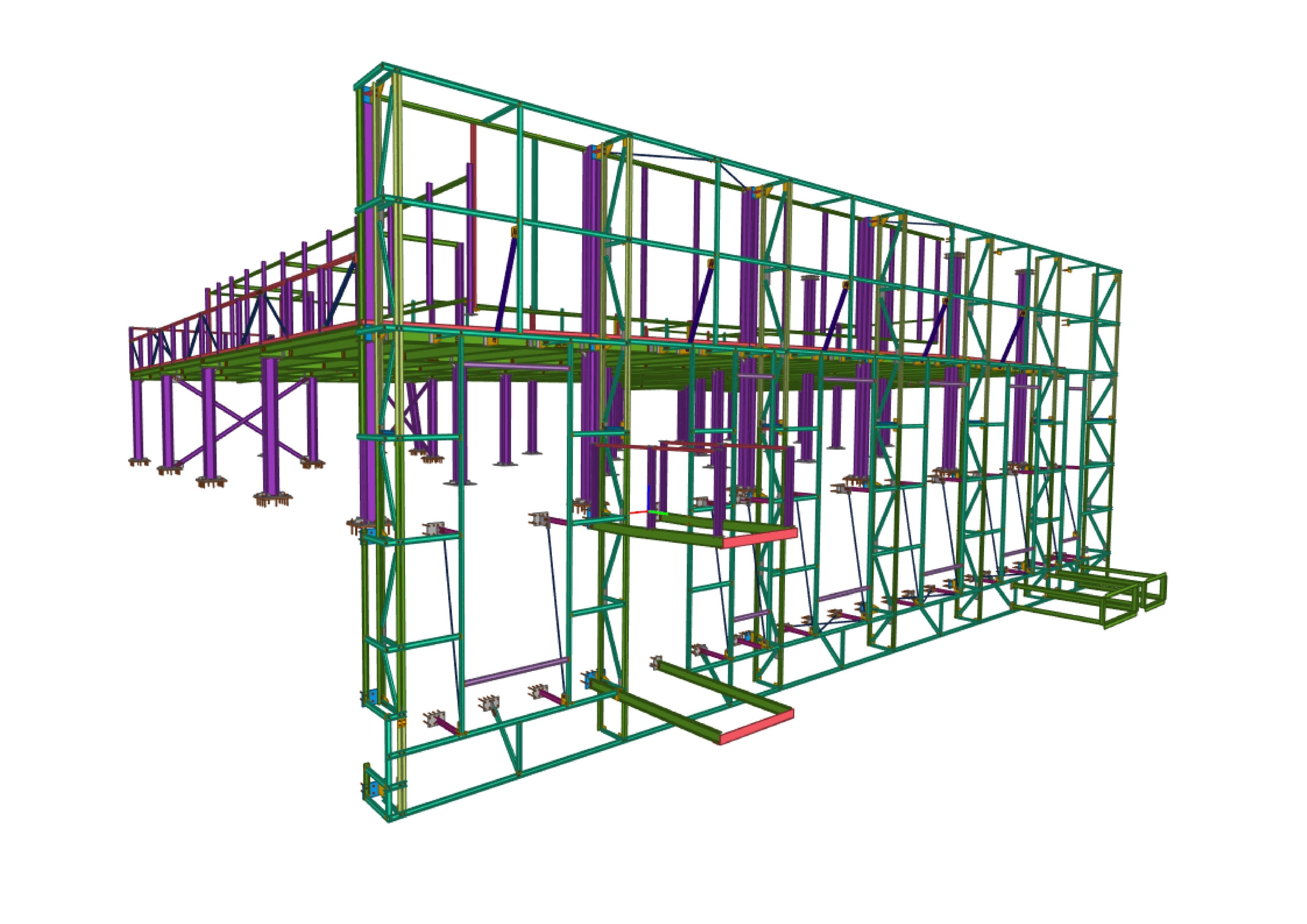 Sono stati sviluppati i modelli delle opere in acciaio, portandoli a un livello costruttivo. I modelli includono la definizione dettagliata dei nodi strutturali e sono stati utilizzati per l’estrazione diretta dei disegni di officina necessari al fornitore per la produzione.