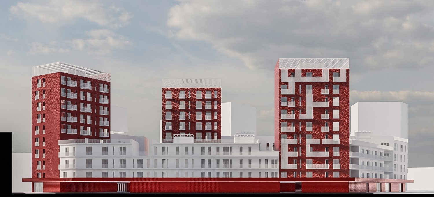 Il progetto prevede la realizzazione di un complesso residenziale composto da sette edifici di diverse altezze: tre torri da 10 piani e quattro strutture più basse di 3-4 piani.