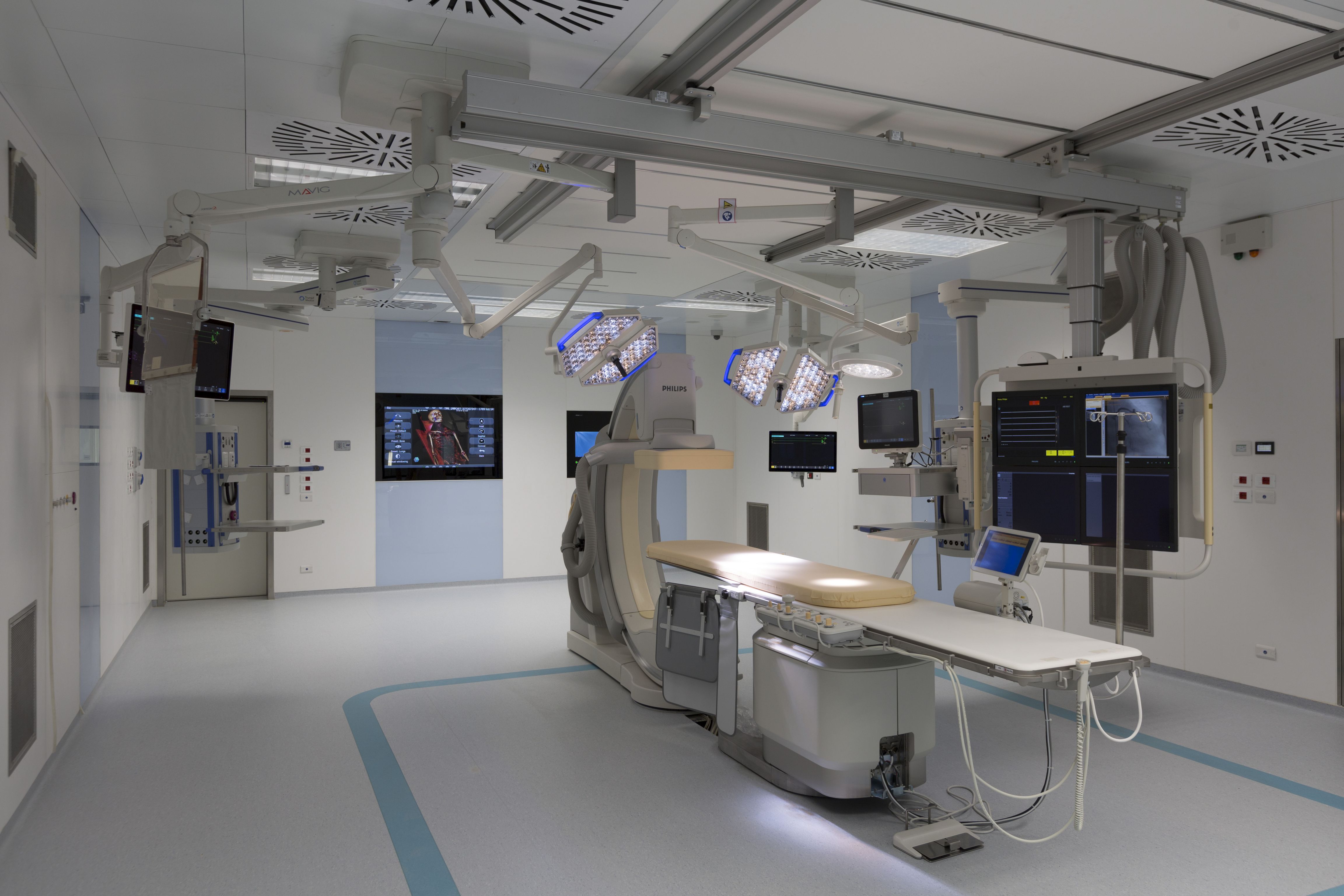 Fase 6: realizzazione del Centro del Cuore (2 sale elettrifi siologia, 2 sale emodinamica, 1 sala ibrida, 1 emodinamica biplanare, 1 sala interventi tempo dipendenti) e ristrutturazione di alcune aree del blocco C da destinare a terapia intensiva