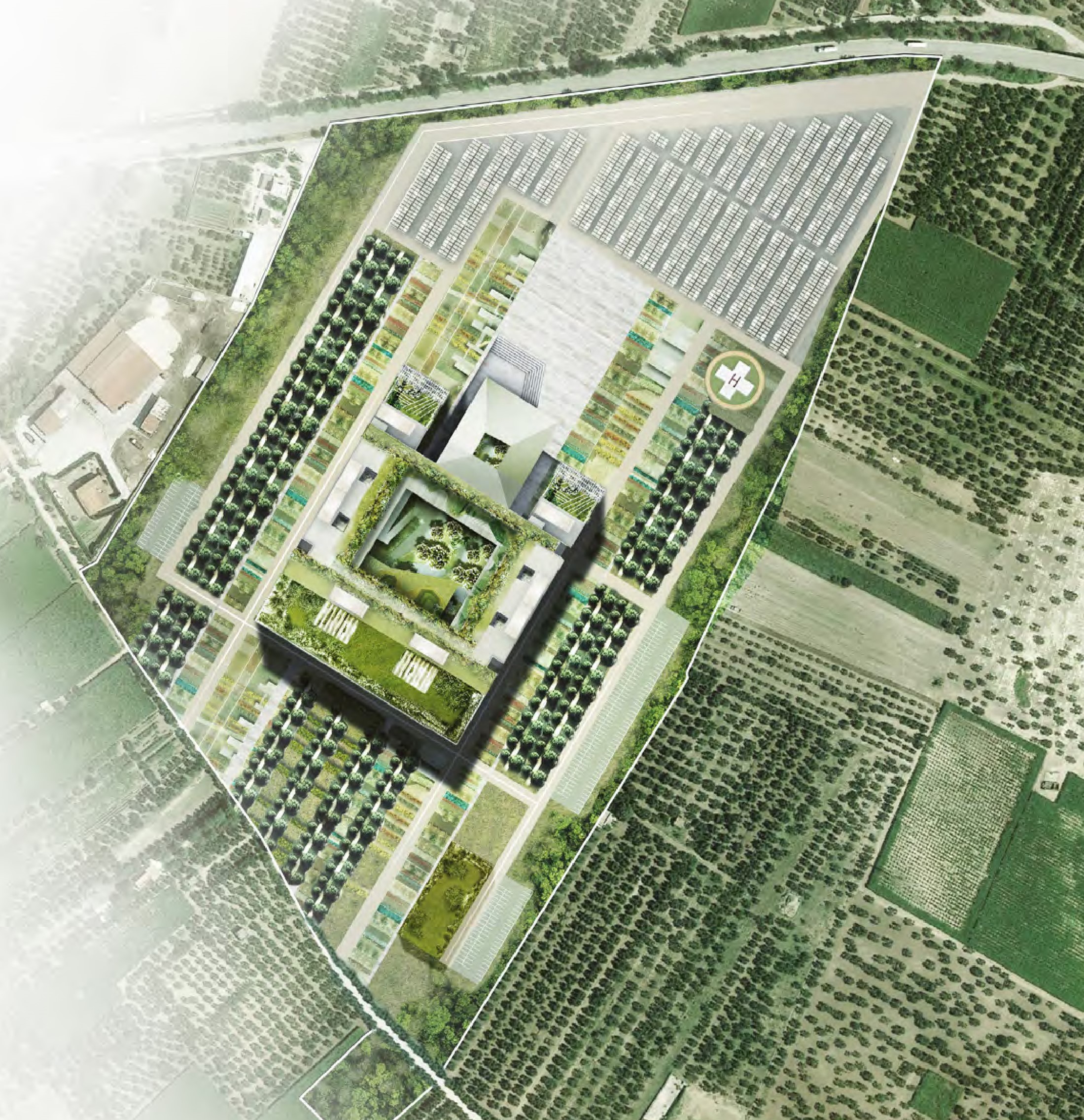 Il progetto è strutturato secondo una intensità di cura orizzontale, per gestire i flussi di persone già dal perimetro esterno, con pochi e specifici punti di ingresso.