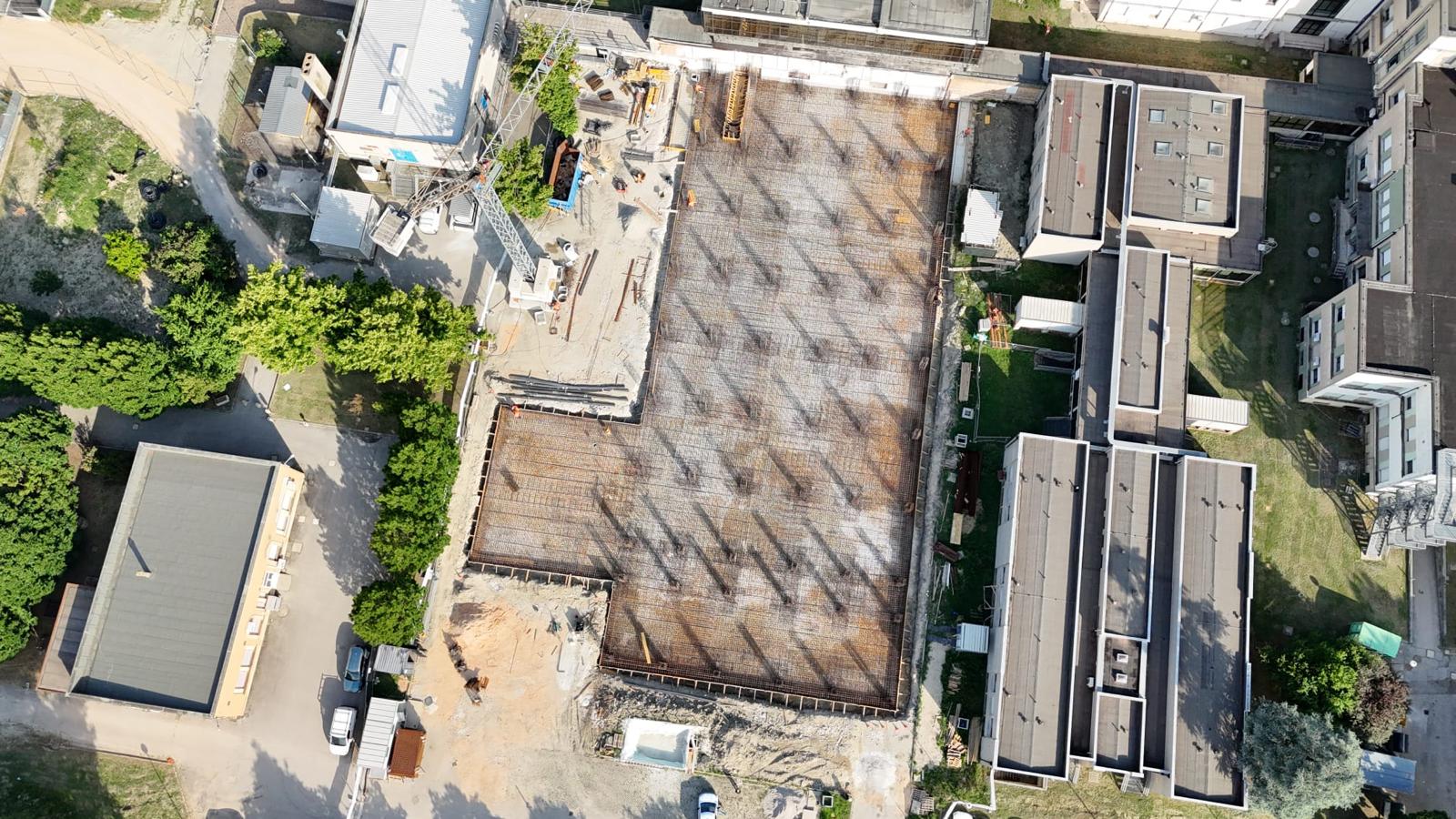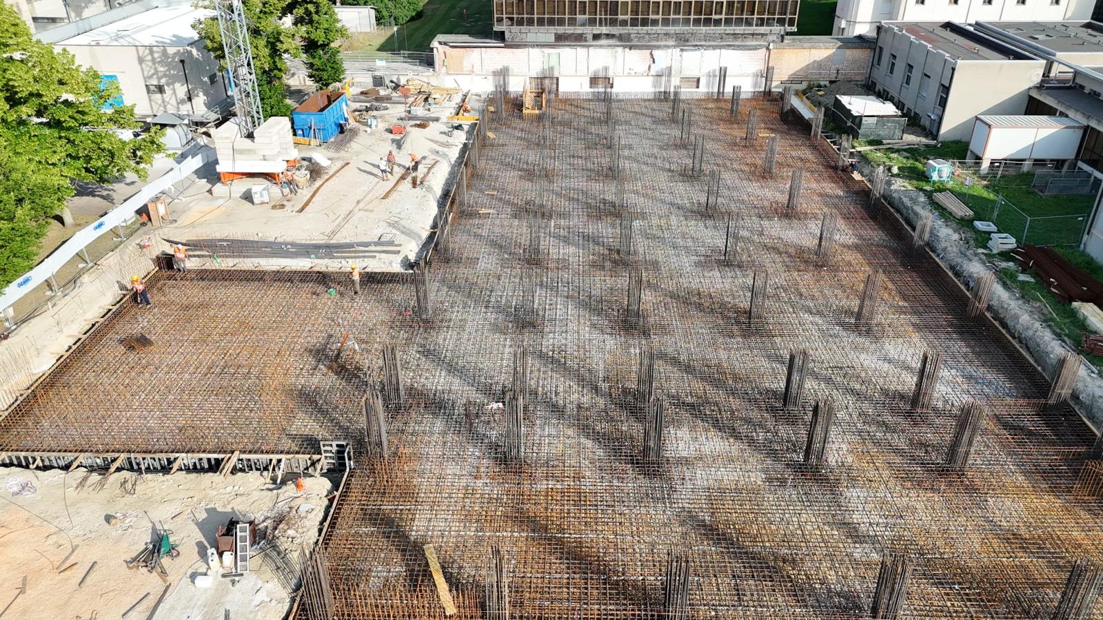 Il nuovo edificio sarà realizzato in sostituzione del precedente blocco 13, previsto in demolizione. Il padiglione ospedaliero sarà connesso al blocco 21 tramite dei connettivi orizzontali presenti al piano interrato, terra e al piano primo. Questa connessione, nel lato ovest, metterà le nuove funzioni del padiglione in continuità con il blocco operatorio esistente nell’adiacente blocco 21.
