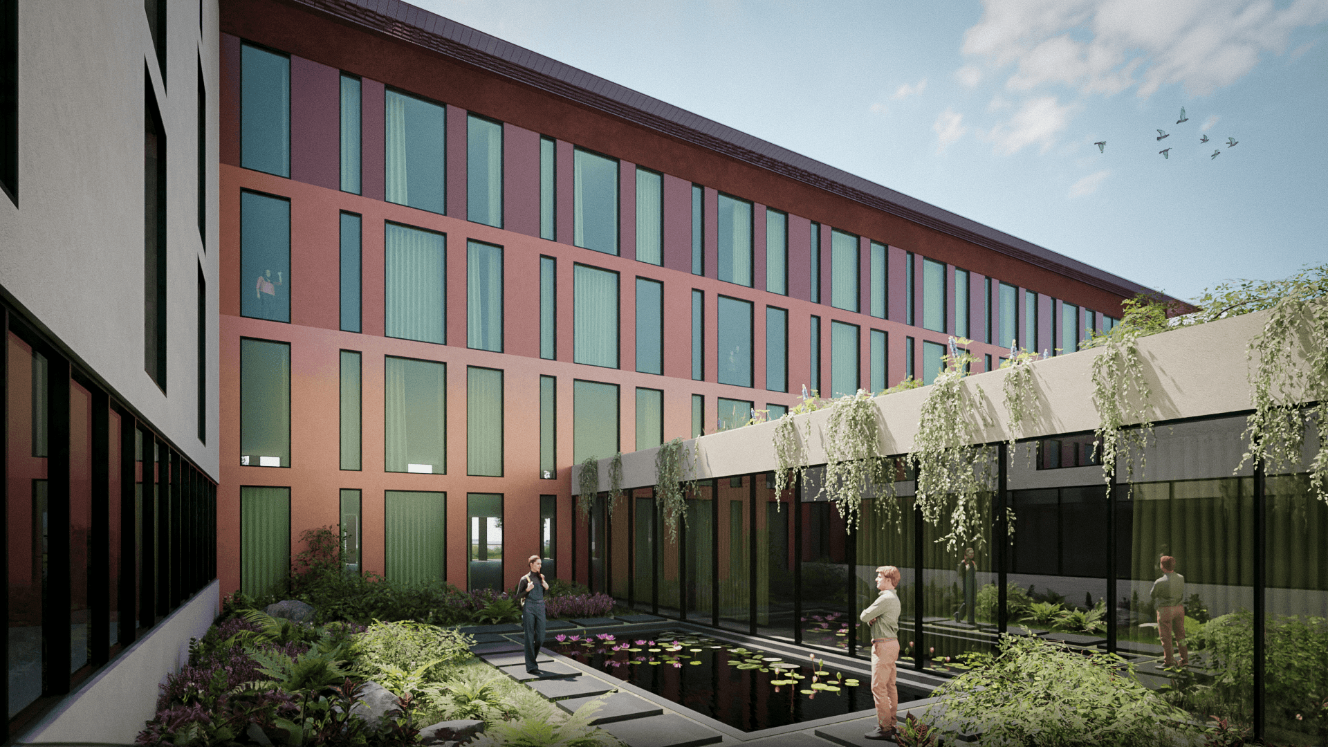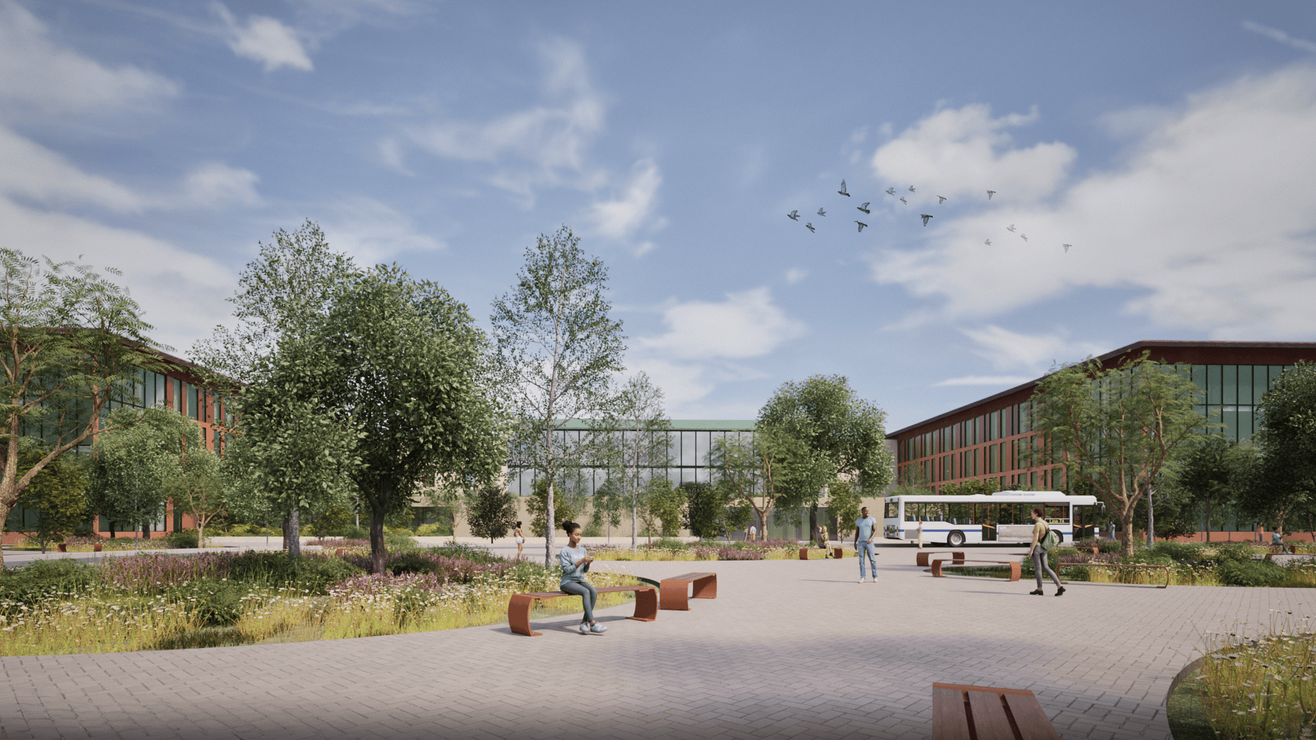 Il masterplan propone una visione rinnovata dell’area, ridefinendone i confini e valorizzando il verde esistente. La riqualificazione parte dalle strutture abbandonate, di valore architettonico, con interventi su efficienza energetica, qualità morfologica e impiantistica. L’ingresso è ripensato come una piazza pubblica, punto di aggregazione e simbolo di apertura alla comunità.