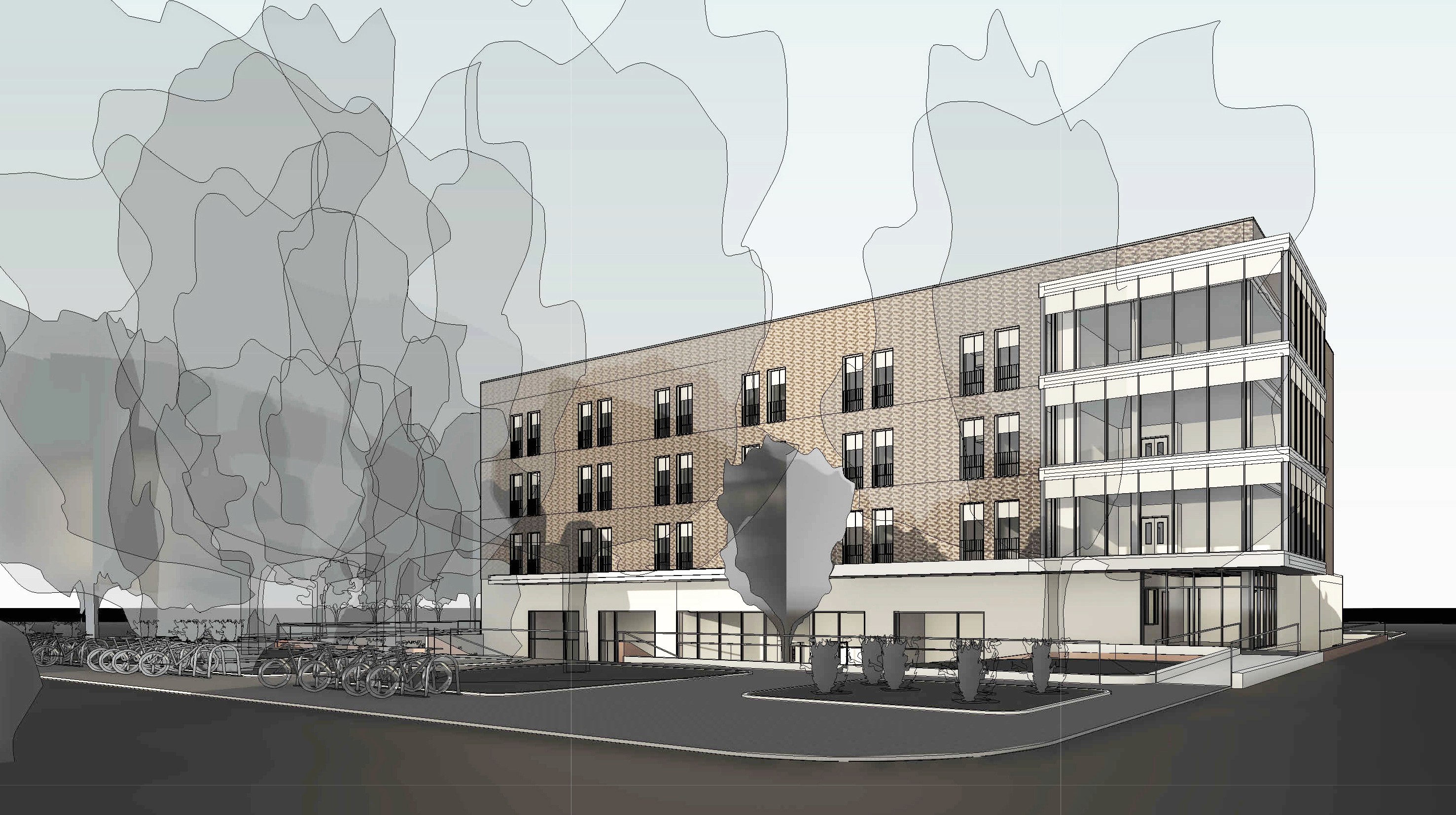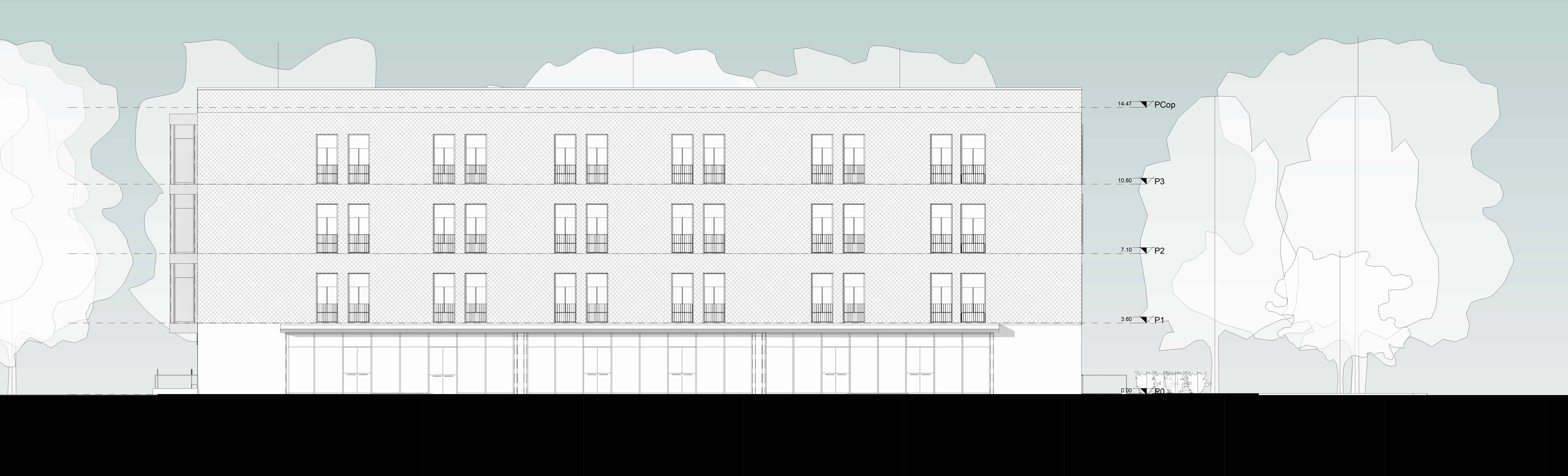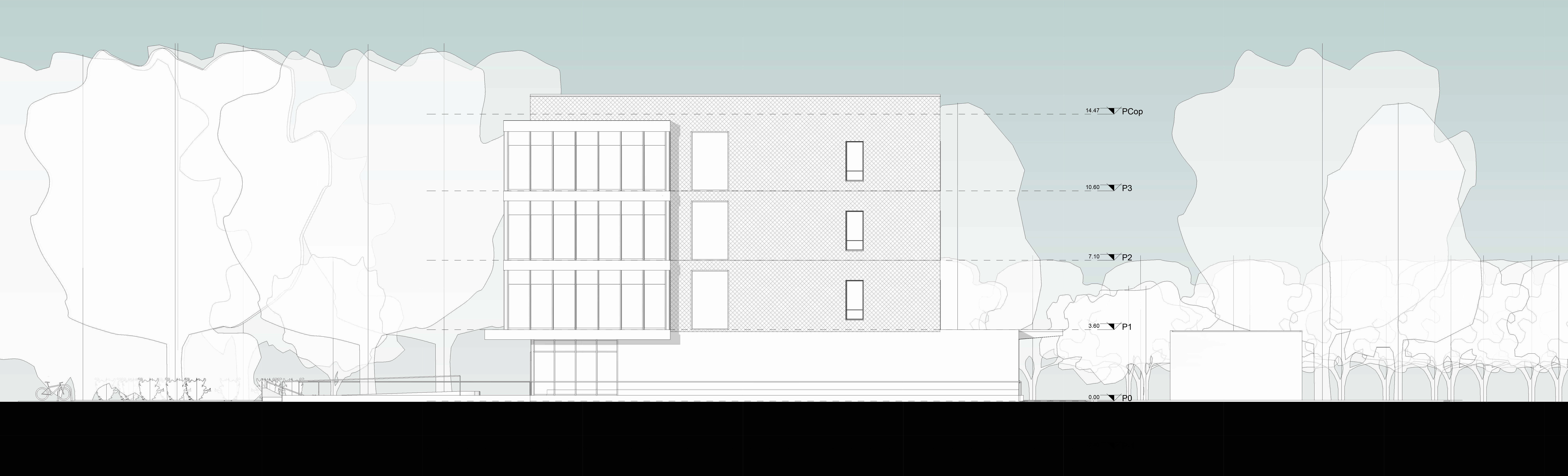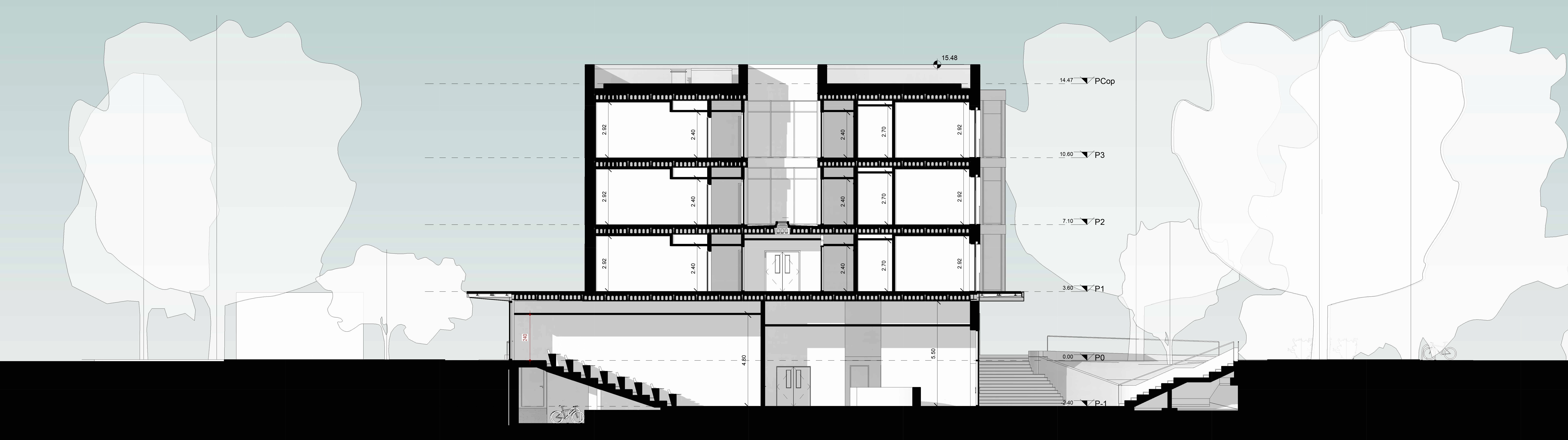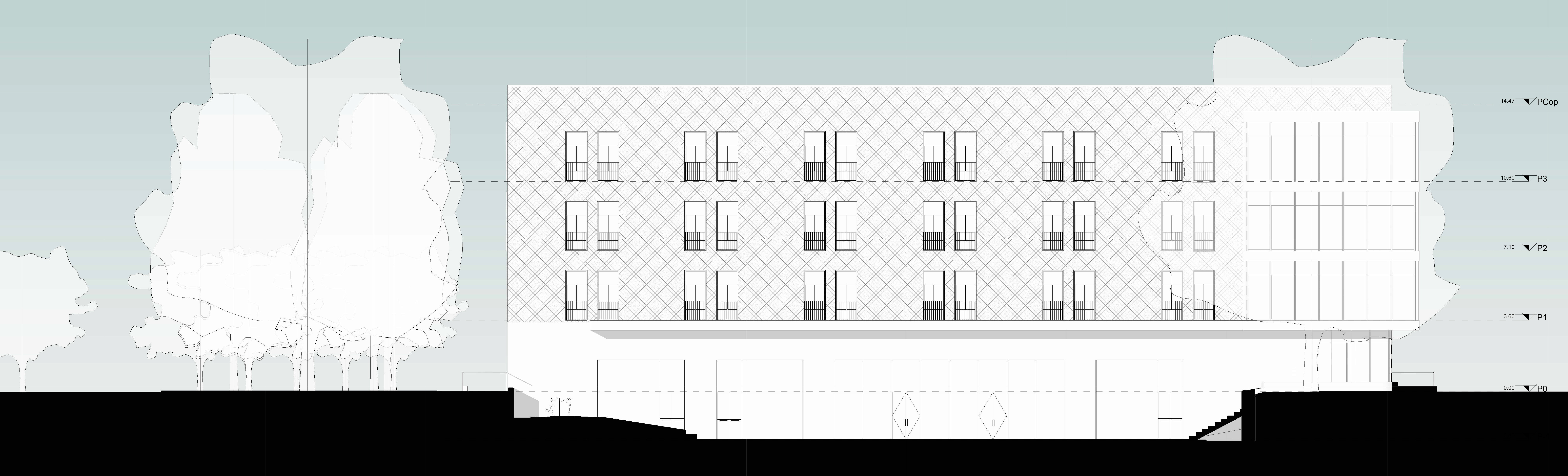 Il progetto nasce dalla volontà di integrare un contesto fatto di edifici realizzati in tempi e stili architettonici differenti con un nuovo fabbricato dal linguaggio materico semplice e deciso, in cui la logica distributiva è raccontata dall’uso dei materiali e dalle trasparenze.
