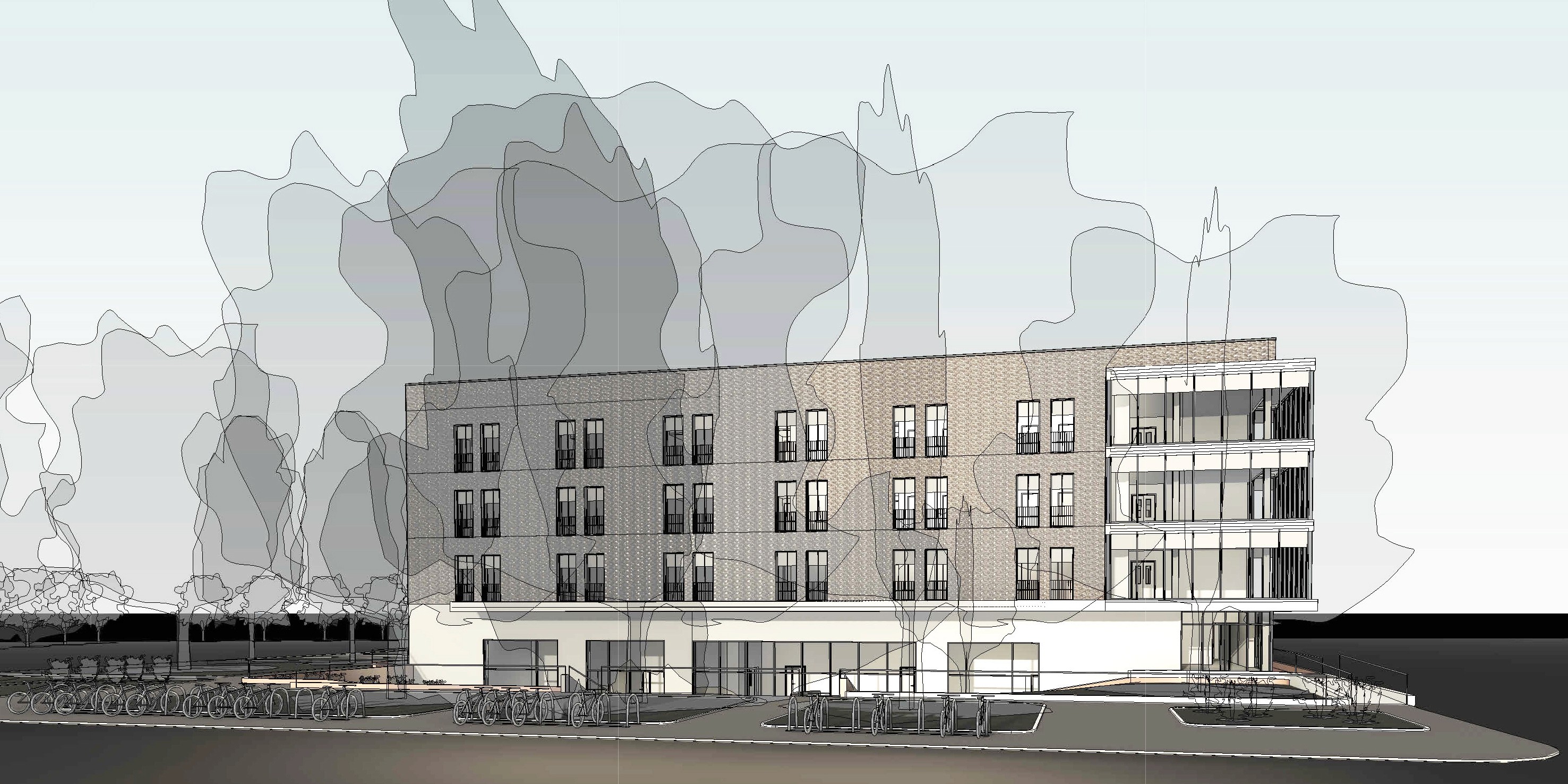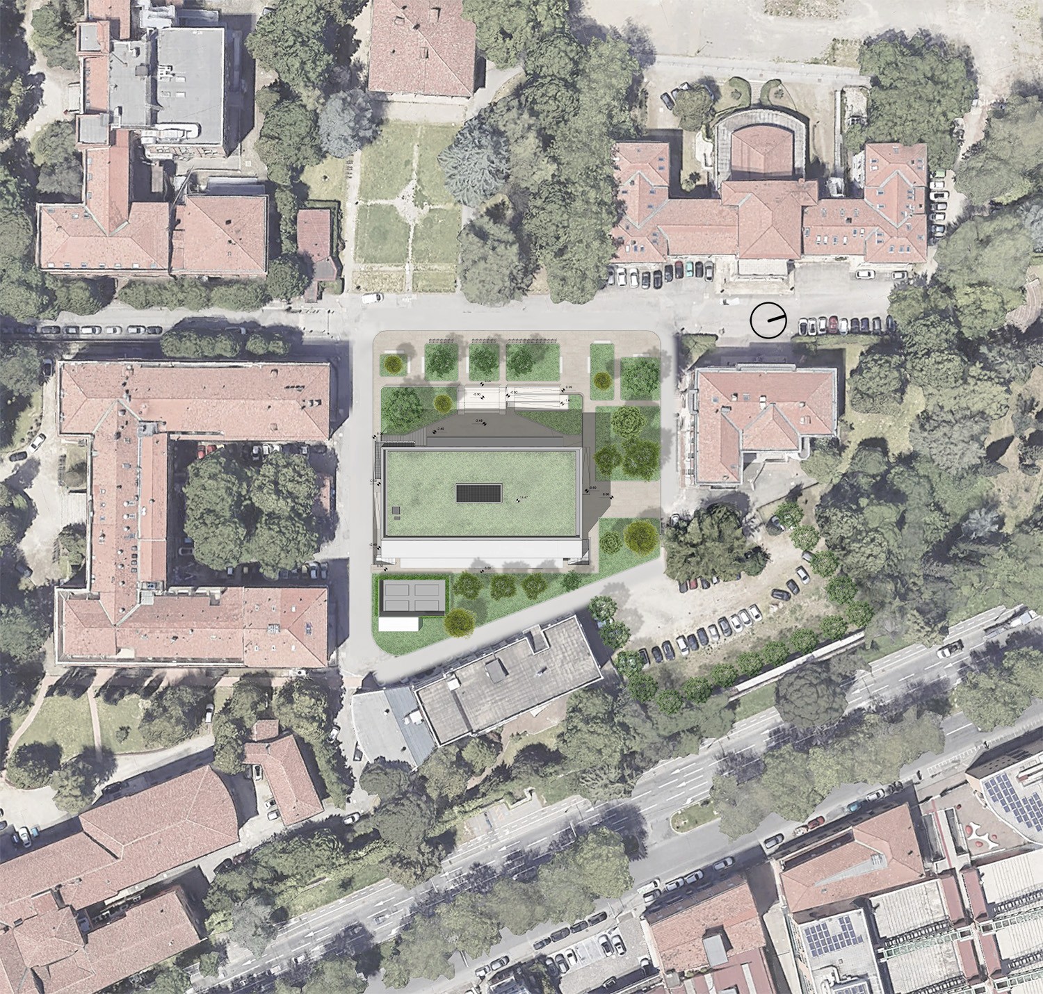 In occasione del progetto definitivo dello studentato viene studiato anche il masterplan dell’intero comparto. Vengono mantenute le vie principali esistenti e creato un sistema di percorsi e punti di interesse che rendono l’intera area un luogo accessibile e vivibile.