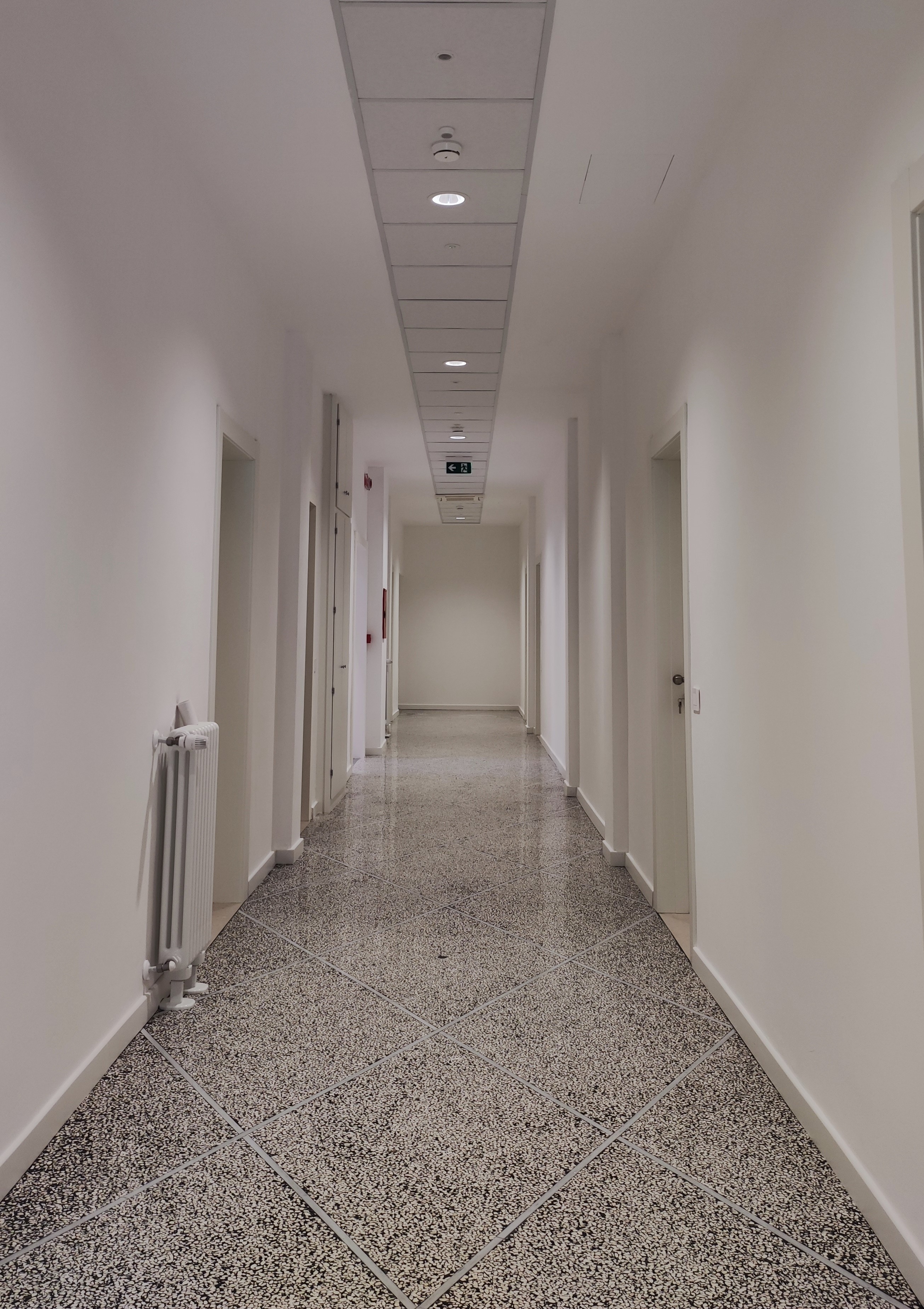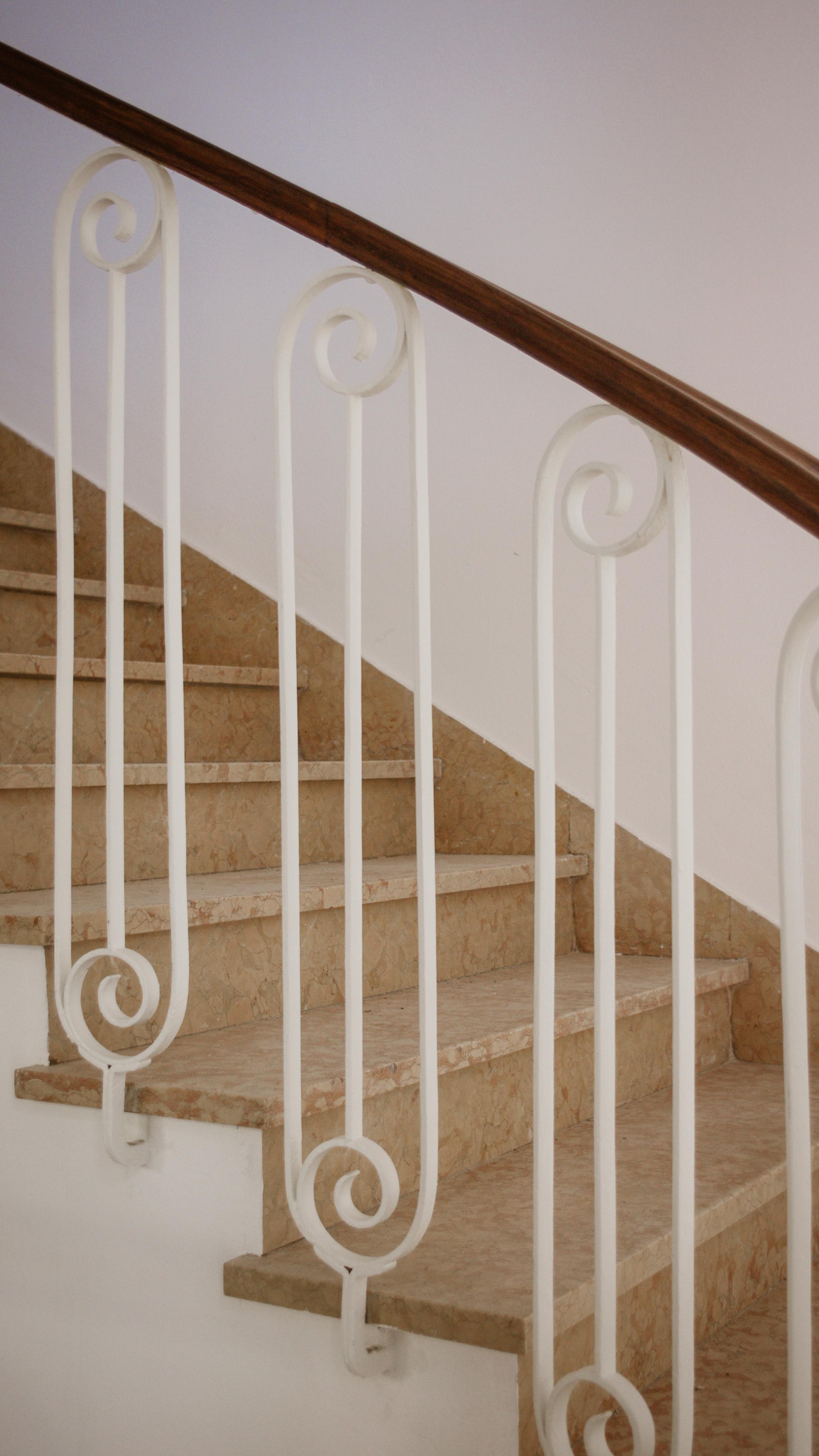 Gli infissi originali in legno bianco sono stati in parte sostituiti, ma tapparelle e colori rispettano le caratteristiche storiche. I pavimenti, variabili per via di interventi successivi, conservano in alcune zone materiali d’epoca come graniglia nei corridoi e marmo nelle scale.