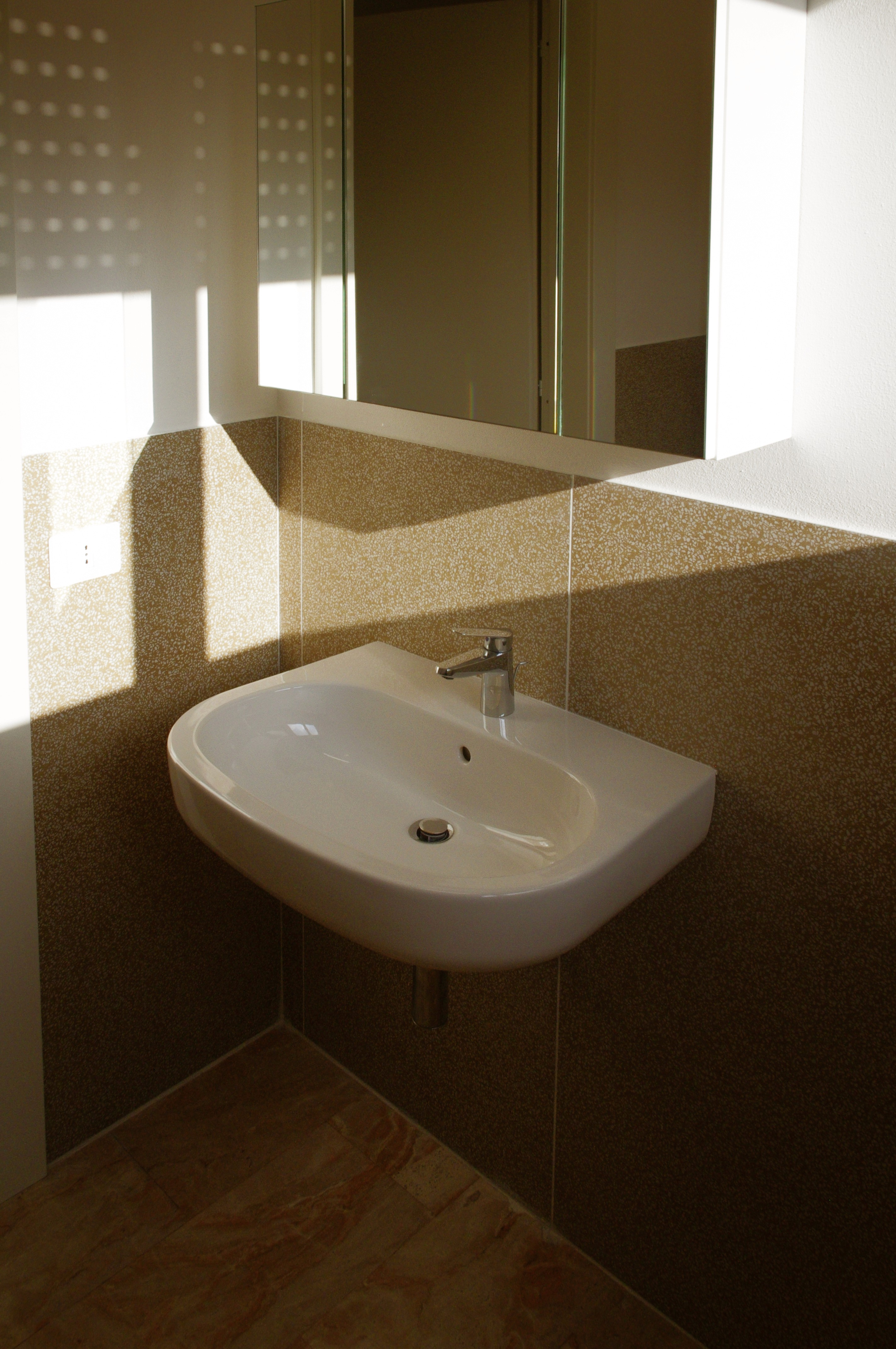 Internamente la scelta cromatica si è orientata sul colore verde nella tonalità tenue e rilassante, sia su alcune pareti che sui decori a pavimento.
