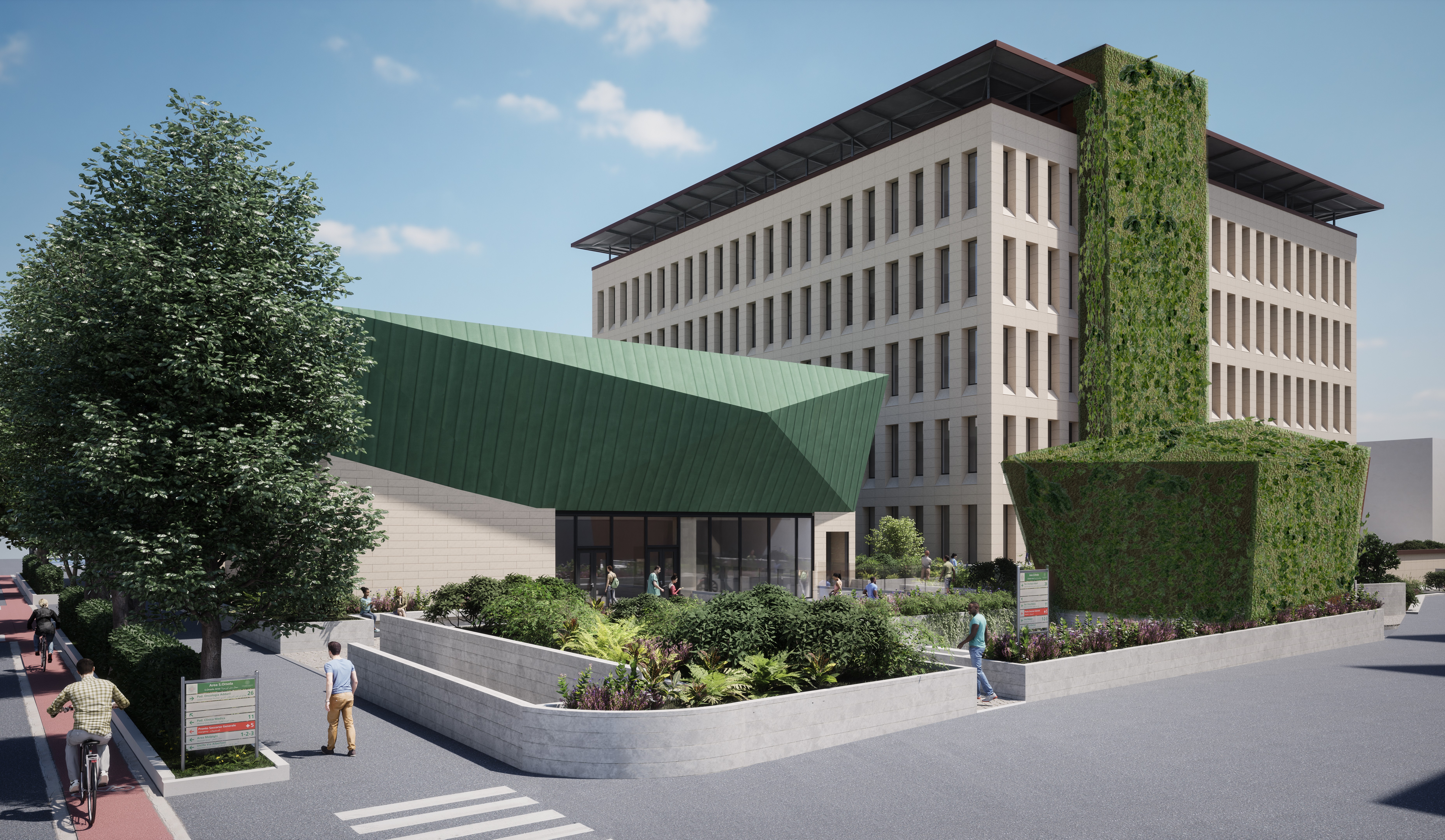 Il Policlinico Sant'Orsola fu concepito come ''Ospedale Giardino'', caratterizzato da un tessuto verde in cui sorgono i vari padiglioni. La presenza vegetazionale ed arborea costituisce dunque un elemento essenziale, oltre che ''biomedicale'', per la vita ospedaliera di pazienti e operatori.